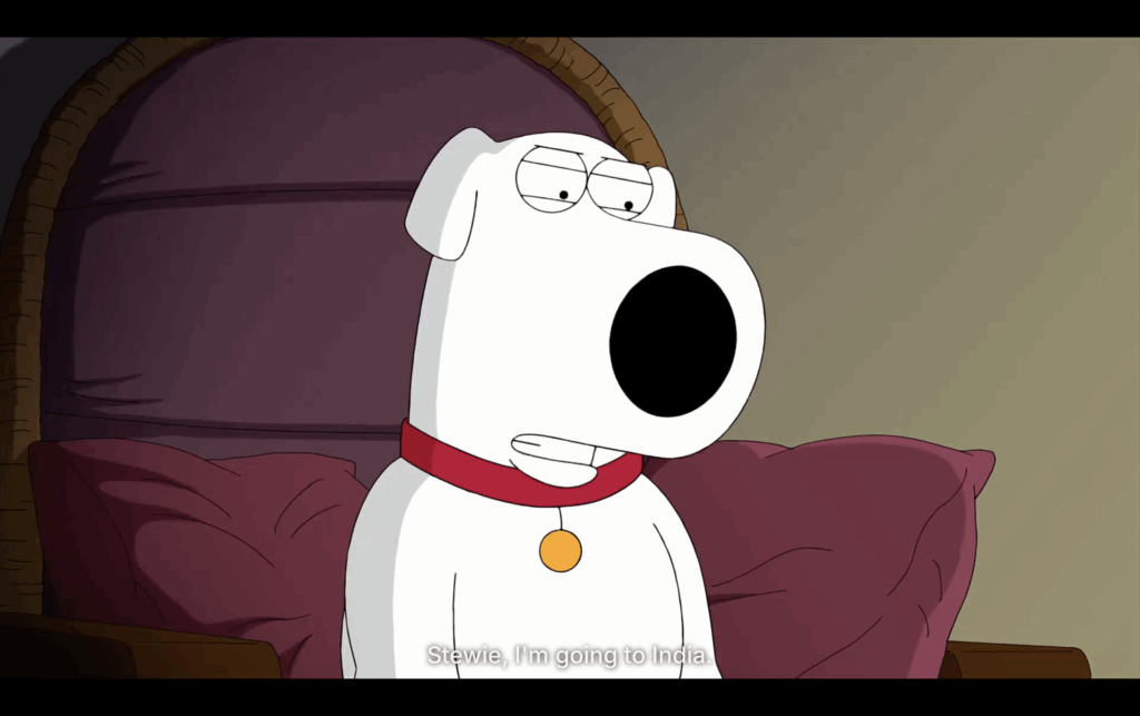The original episode’s premise is straightforward. Brian falls for Padma, a tech support worker in India, and he and Stewie travel there to find her.