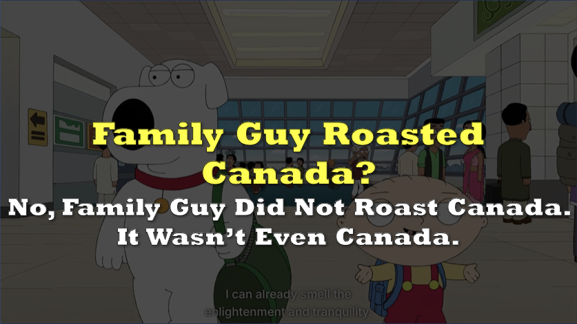 The viral claim that the animated series Family Guy mocked Canada does not survive a side-by-side comparison with the actual episode. The circulating clip uses footage from “Road to India,” the season 14 finale that aired on May 22, 2016, then reframes it to look like Brian and Stewie have landed in Canada.