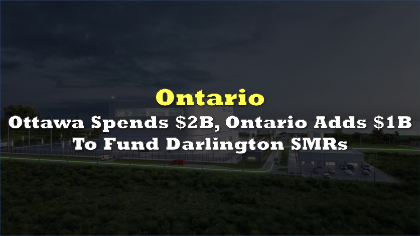 Ottawa will invest $2 billion to build four small modular reactors at Ontario Power Generation’s Darlington site in Bowmanville through the Canada Growth Fund, a move the government says will make Canada the first G7 country to bring SMR technology online.
