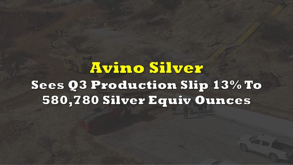 Avino Silver & Gold (TSX: ASM) saw production slip in the third quarter to 580,780...