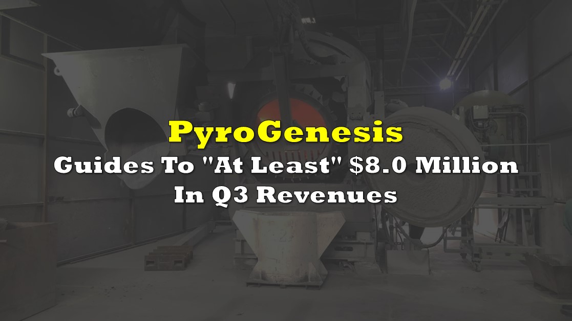 PyroGenesis Canada (TSX: PYR) this morning provided guidance for its third quarter financial results. The company expects to see revenue come in at least at $8.0 million in the third quarter, which is potentially down from $8.3 million in the second quarter.