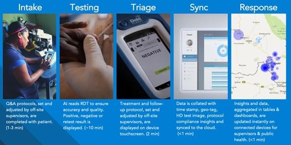 Data collected from the devices enables public health officials and supervisors to monitor real-time data on disease spread through a series of dashboards, IT systems, and databases that enables rapid responses to occur. Utilization of the device also allows for diagnostic testing in any setting, such as the workplace to support return-to-work use cases.
