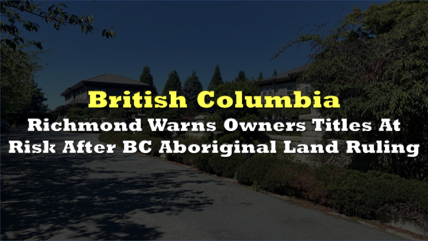 The City of Richmond has notified registered homeowners that their property rights could be affected by the BC Supreme Court’s decision in Cowichan Tribes v. Canada, which recognized Aboriginal title over parts of Lulu Island and held that Aboriginal title takes precedence over fee simple ownership.