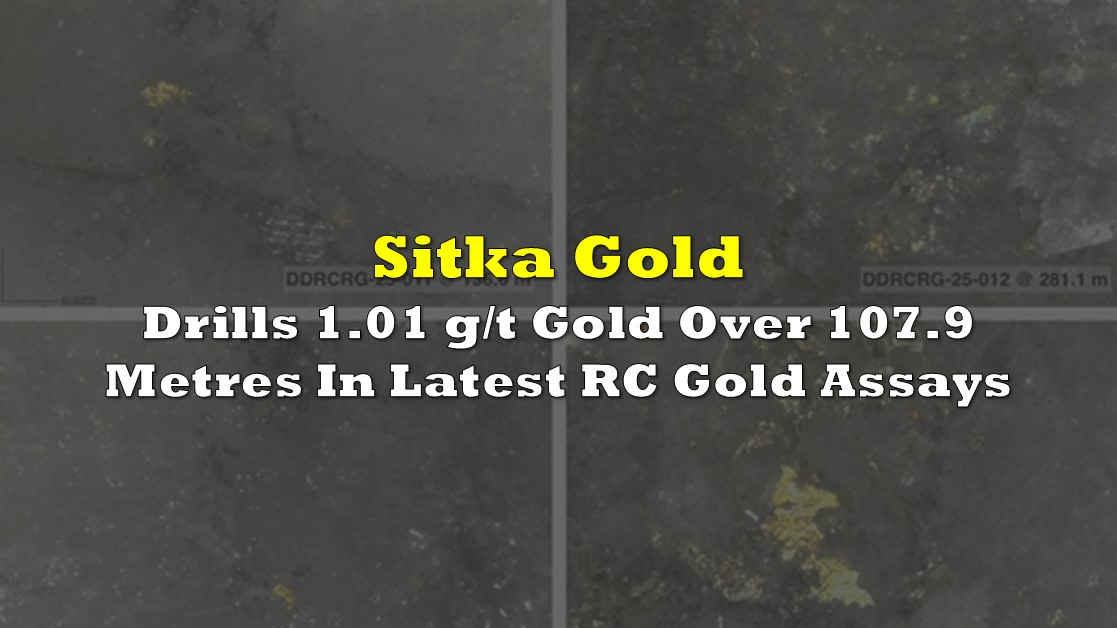 “With visible gold observed in sheeted quartz veining across the entire 1.1 kilometre strike drilled this year and assays now confirming gold mineralization over 575 metres of strike, Rhosgobel is rapidly emerging as a significant new gold discovery within our RC Gold Project. The fact that 16 of the first 17 holes have returned intersections exceeding 100 gram-metres of gold further underscores both the scale and consistency of this system. We eagerly await results from the remaining 26 holes completed at Rhosgobel as we continue to define the size and potential of this exciting new gold zone,” commented Cor Coe, CEO of Sitka Gold.