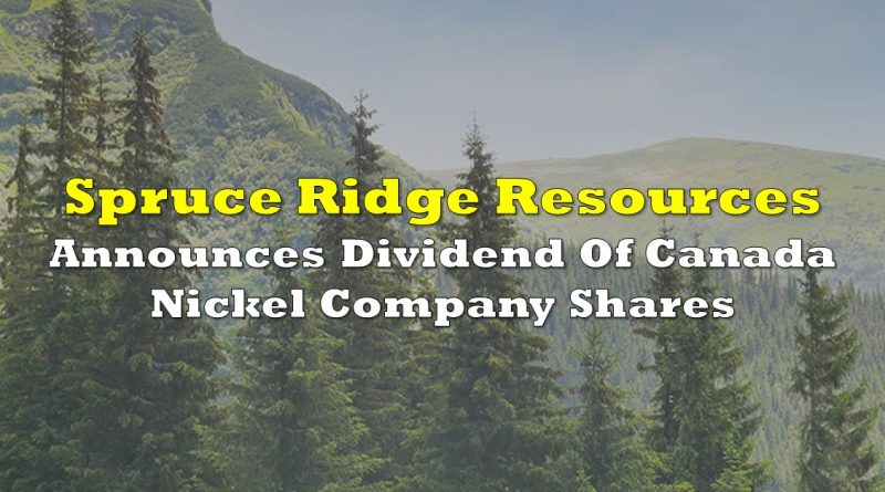 Under what the company has described as a “dividend in kind,” Spruce Ridge will distribute a total of 2,500,000 common shares of Canada Nickel to its shareholders. The company currently holds 10,600,000 common shares as a result of the sale of its interest in the Crawford Nickel-Cobalt Sulphide Project, located near Timmins, Ontario. Following the Spruce Ridge dividend, the company will continue to hold 8.1 million common shares of the issuer.