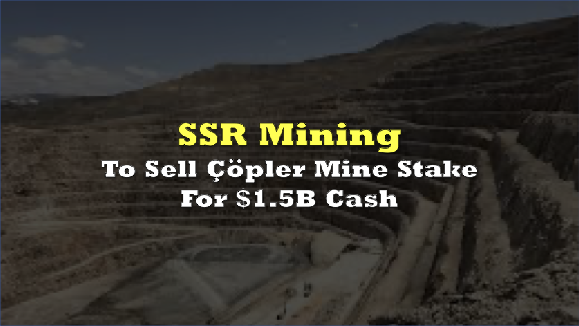 SSR Mining has agreed to sell its 80% ownership in the Çöpler mine and related properties in Türkiye to Cengiz Holding for $1.5 billion in cash.