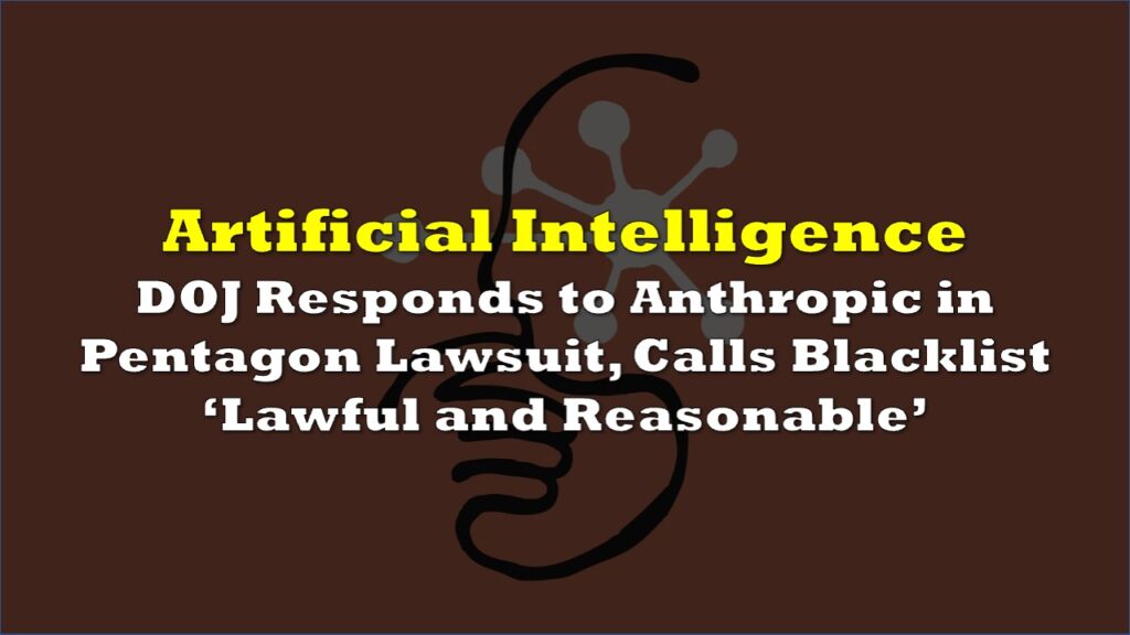 DOJ Responds to Anthropic in Pentagon Lawsuit, Calls Blacklist ‘Lawful and Reasonable’