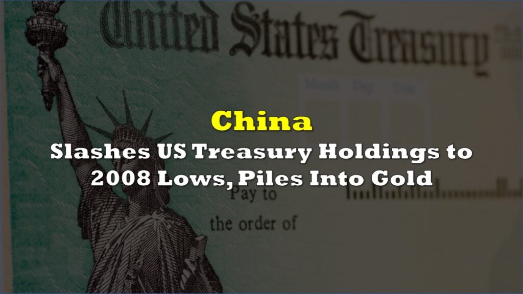 China Slashes US Treasury Holdings to 2008 Lows, Piles Into Gold