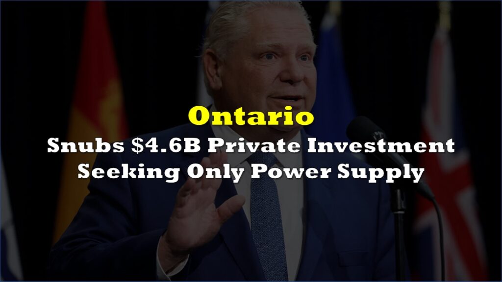 Ontario Snubs $4.6B Private Investment Seeking Only Power Supply