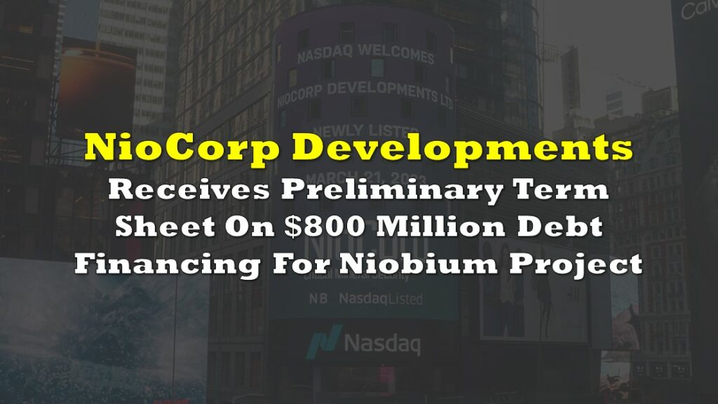 NioCorp Receives Preliminary Term Sheet On $800 Million Debt Financing For Niobium Project