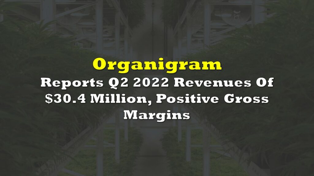 Organigram Reports Q2 2022 Revenues Of $30.4 Million, Positive Gross Margins