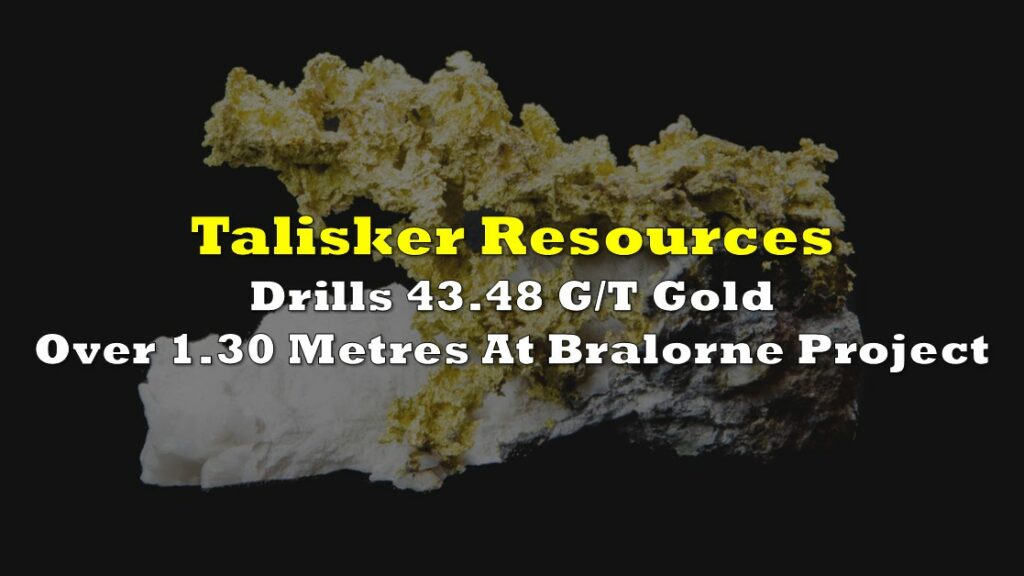 Talisker Resources Ltd. (TSX: TSK) announced today the assay result from a single drill hole in the ongoing drilling program at the company’s flagship Bralorne gold project. The hole SB-2021-043 yielded a “high-grade” intersect of 19.73 g/t gold over 1.0 metre within 6.29 g/t gold over 4.65 metres.