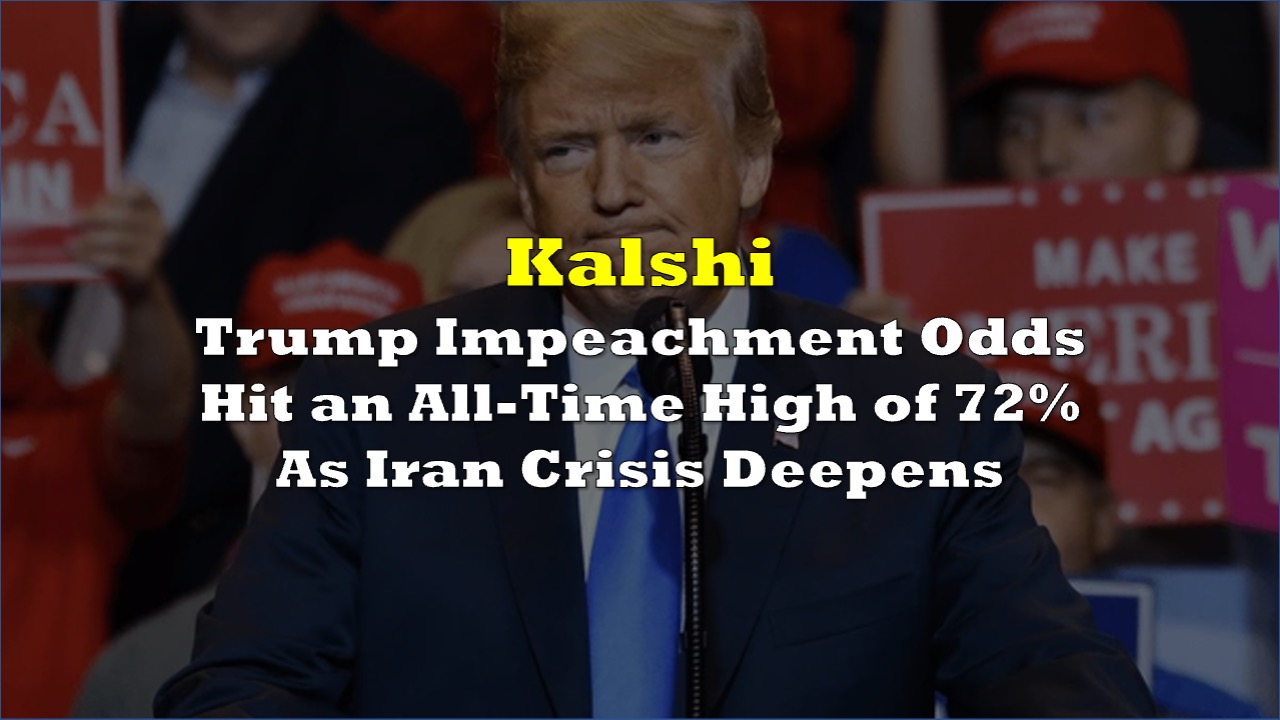 Prediction market Kalshi now prices the probability of President Donald Trump being impeached before 2028 at 72.4% — an all-time high — as the Iran crisis escalates and congressional Democrats intensify calls for his removal.