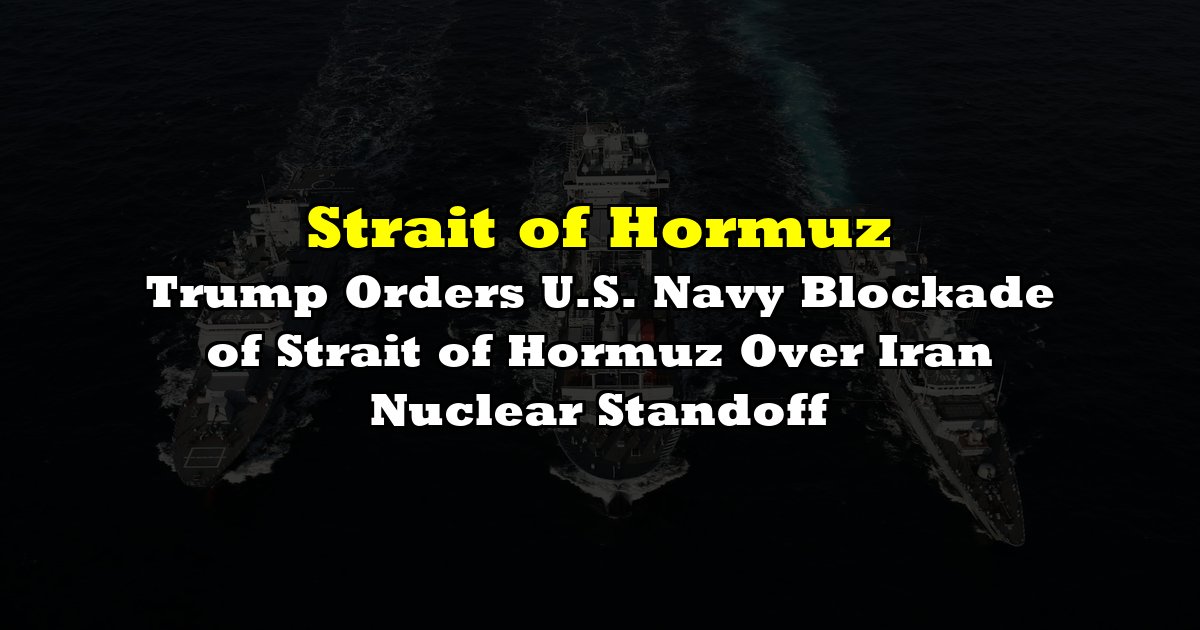 President Donald Trump has ordered an immediate U.S. Navy blockade of the Strait of Hormuz, a critical global oil chokepoint, following a breakdown in nuclear negotiations with Iran. The operation, set to begin shortly, aims to halt all ship traffic entering or leaving the strait until Iran guarantees free and safe passage.