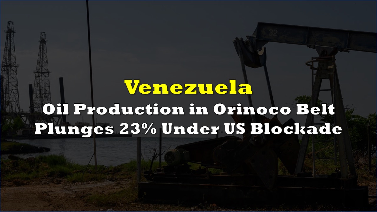 Venezuelan Oil Output From Orinoco Belt Drops 23% on US Blockade pic.twitter.com/0qHIVkWEGj