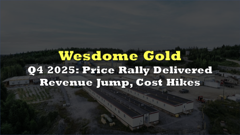 Wesdome Gold Mines (TSX: WDO) posted Q4 2025 revenue of $287.9 million, up from $182.6 million, while full-year revenue increased to $914.3 million from $558.2 million. The company said the gains were led by higher gold prices, stronger annual production and wider margins across both Eagle River and Kiena.