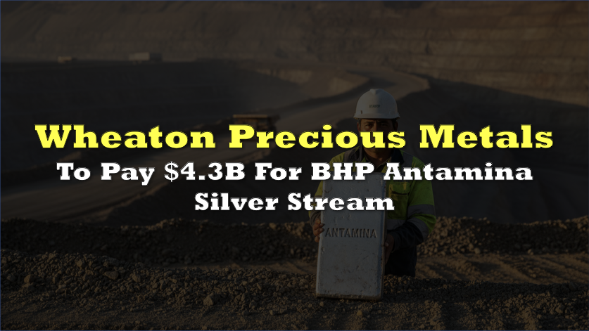 Wheaton Precious Metals will acquire an additional silver stream on the Antamina mine in Peru by contracting with a BHP Group subsidiary for BHP’s 33.75% share of payable silver, increasing Wheaton’s combined stream coverage to 67.5% of Antamina’s silver production on closing from 33.75% currently delivered under the existing Glencore stream.